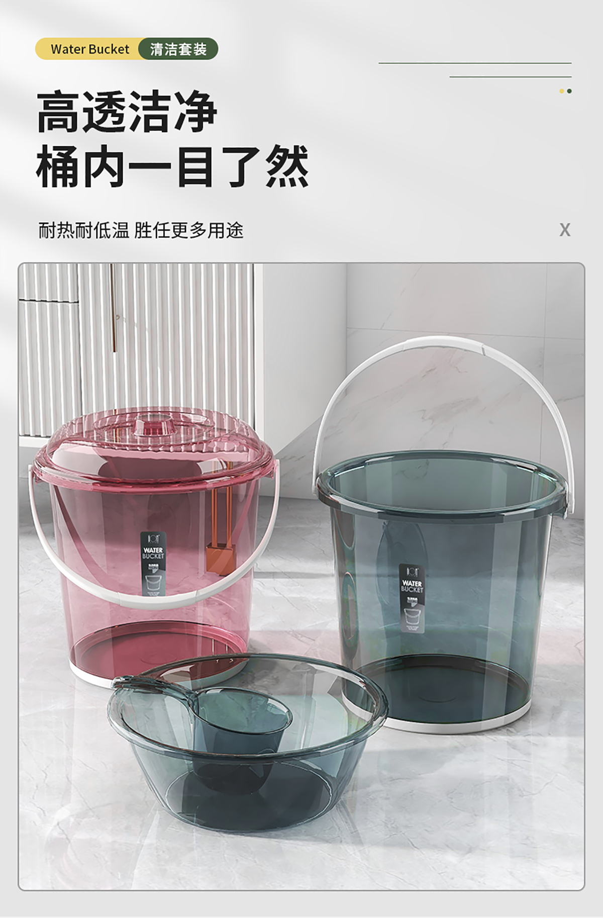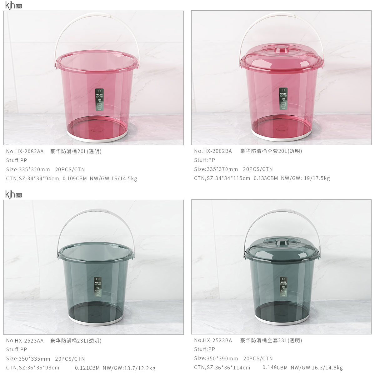 豪華防滑桶13L/16L/20L(桶/全套桶+蓋)透明款