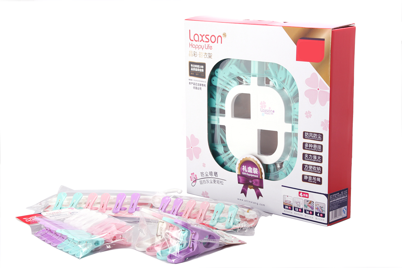 Size: 晶彩晾衣架(24夾):350*350mm收合晾衣架(12夾):460*190mm強(qiáng)力大衣夾(4夾):190*130mm強(qiáng)力小衣夾(16夾):240*125mm