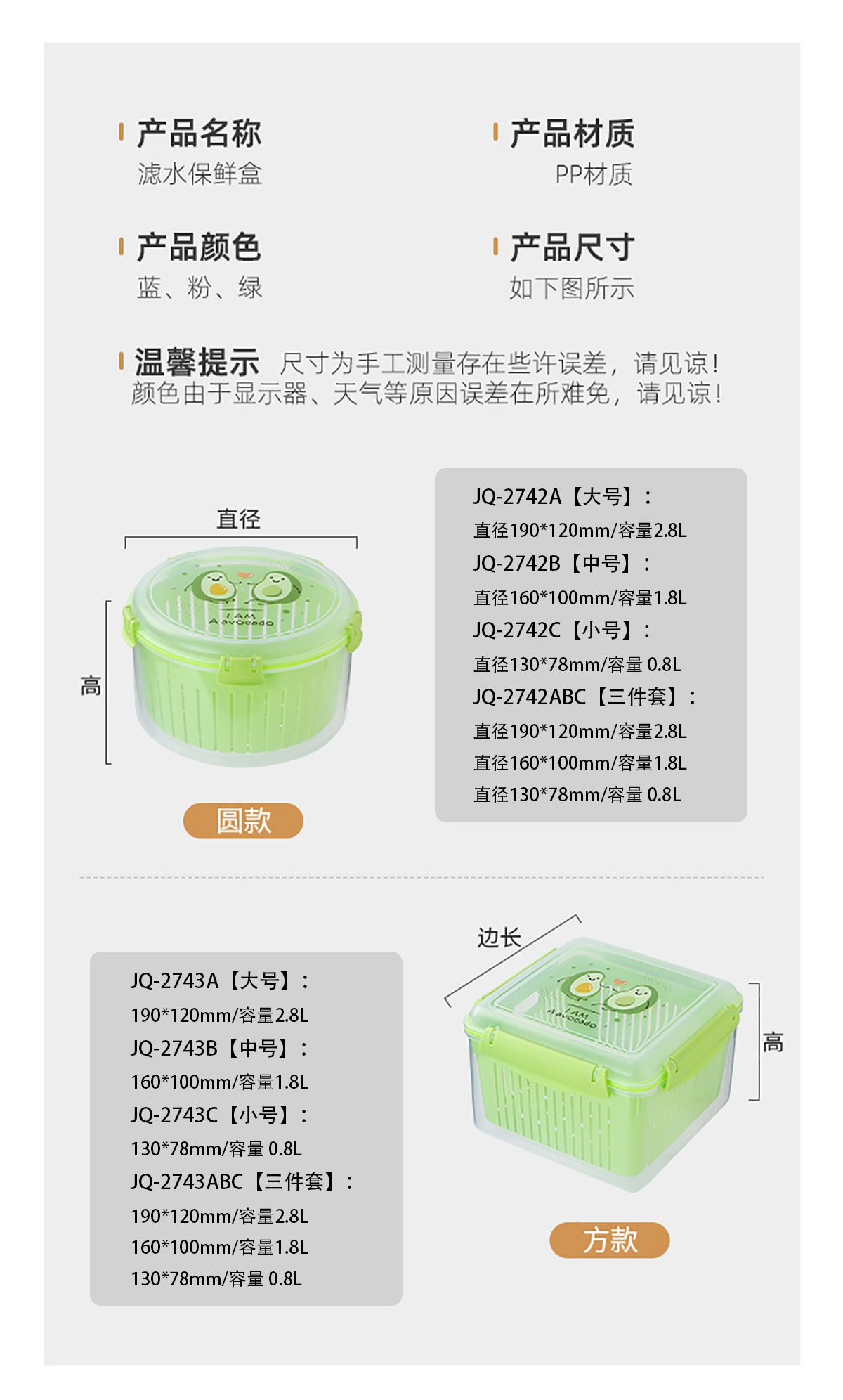 JQ-2742ABC:直徑130*78mm/直徑160*100mm/直徑190*120mm