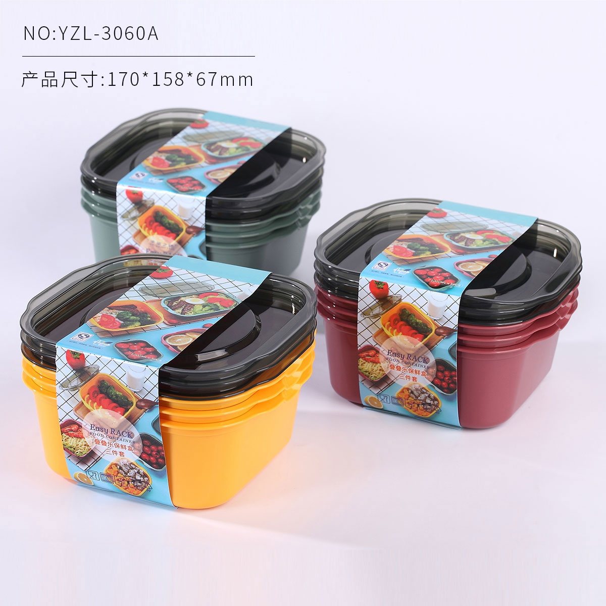 疊疊樂保鮮盒三件套(正方形)系列 22年新色