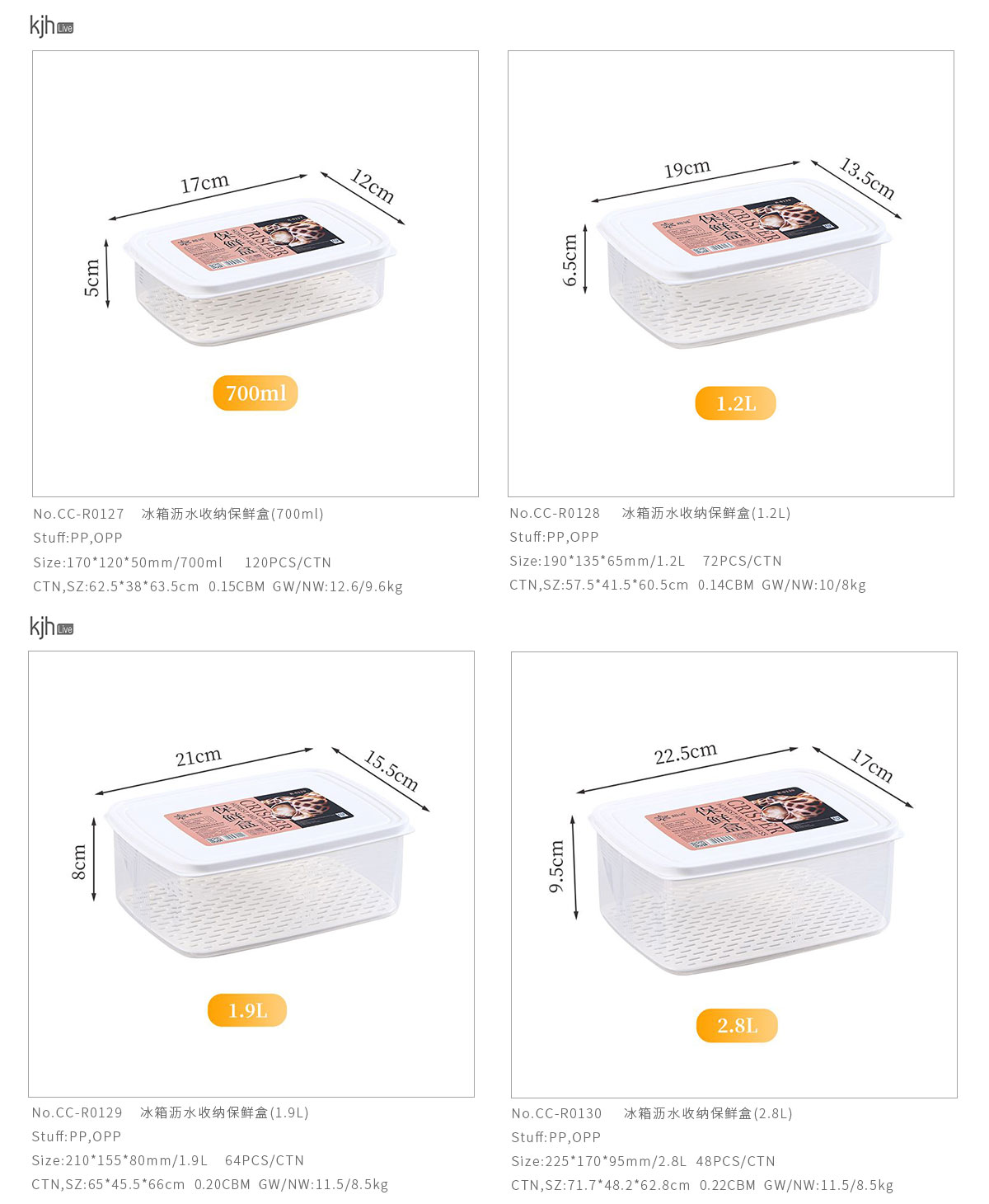冰箱瀝水收納保鮮盒(700ml/1.2L/1.9L/2.8L/3.6L)