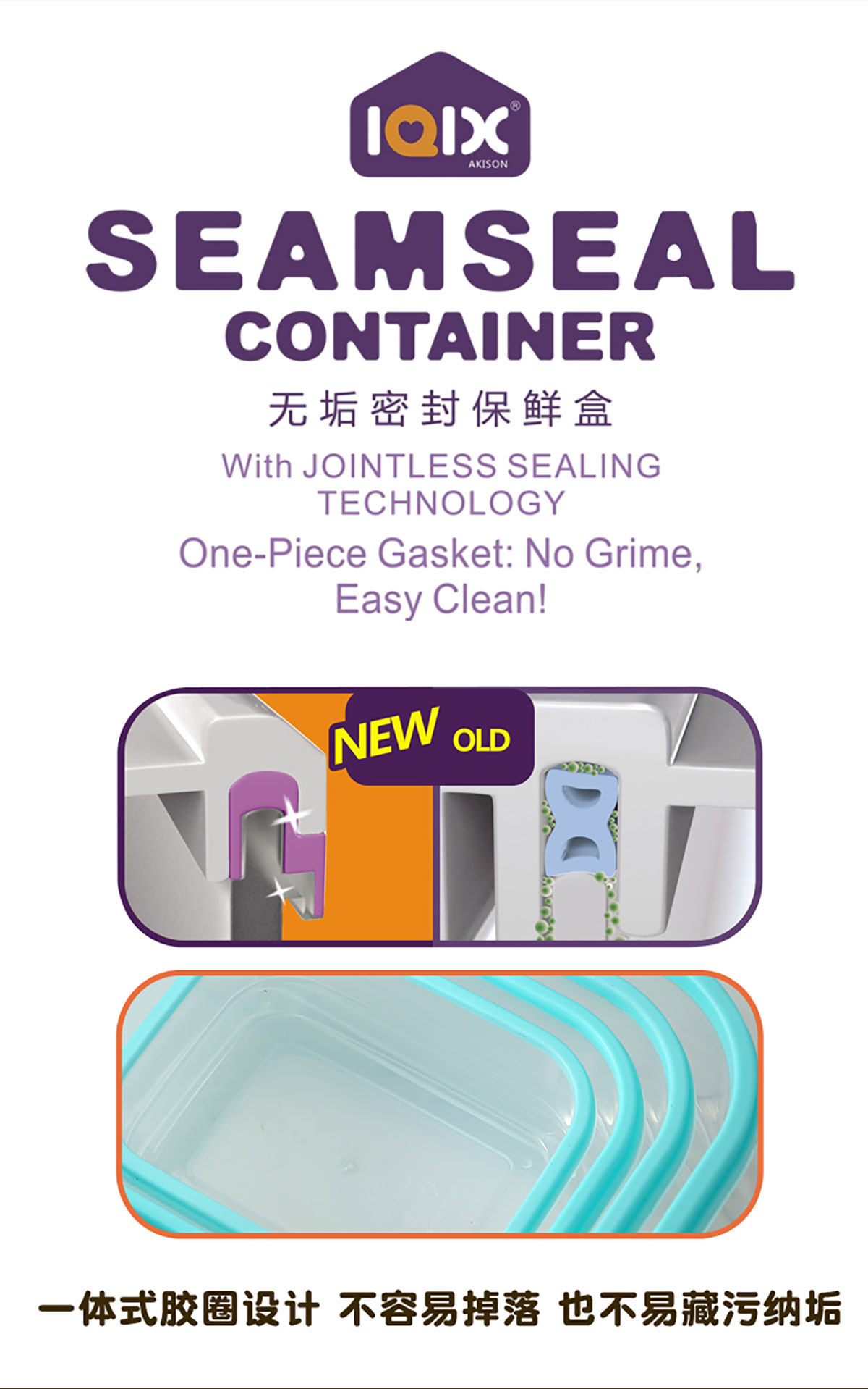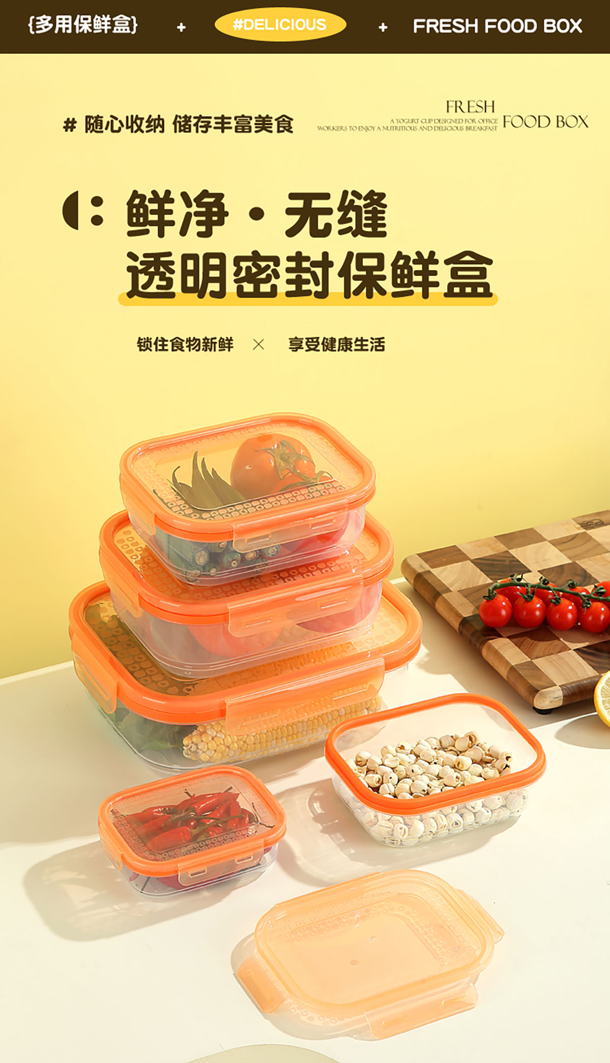 鮮凈無縫密封保鮮盒(長方3件套/5件套)