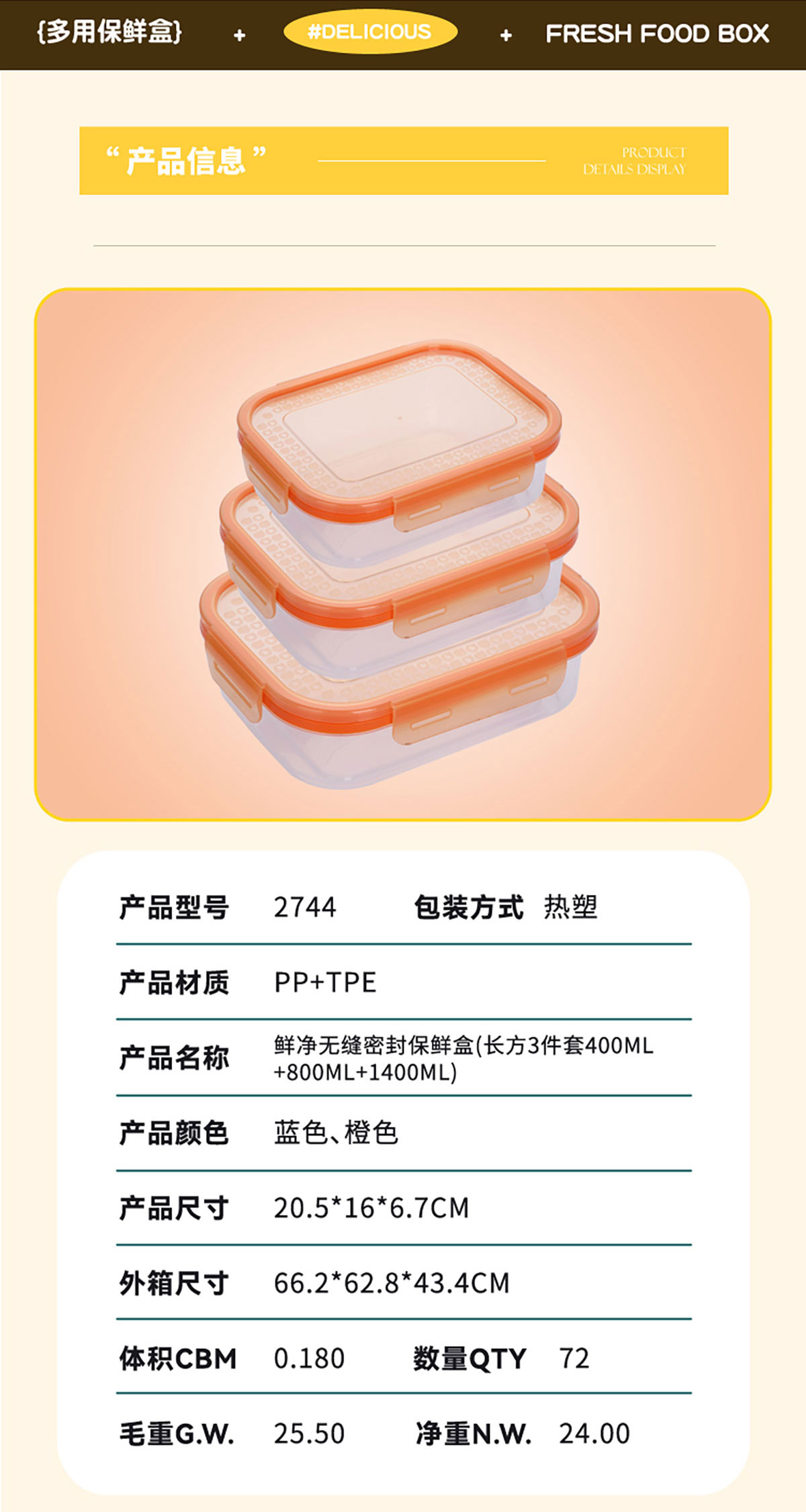 Size: AQX-2744:205*160*67mm/長方3件套400ml+800ml+1400ml