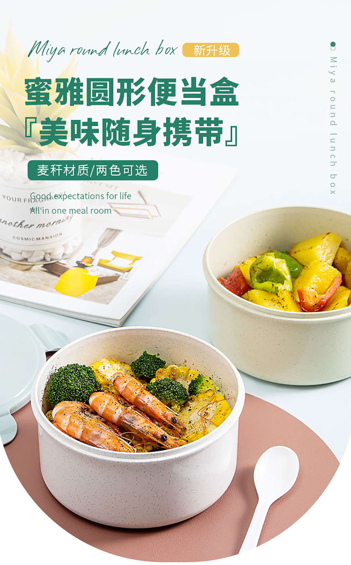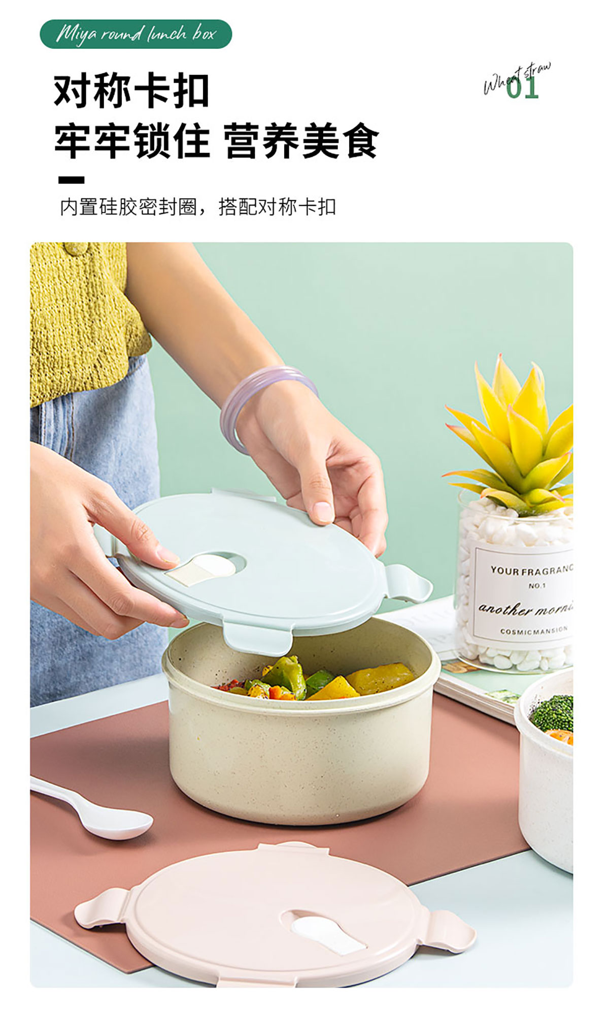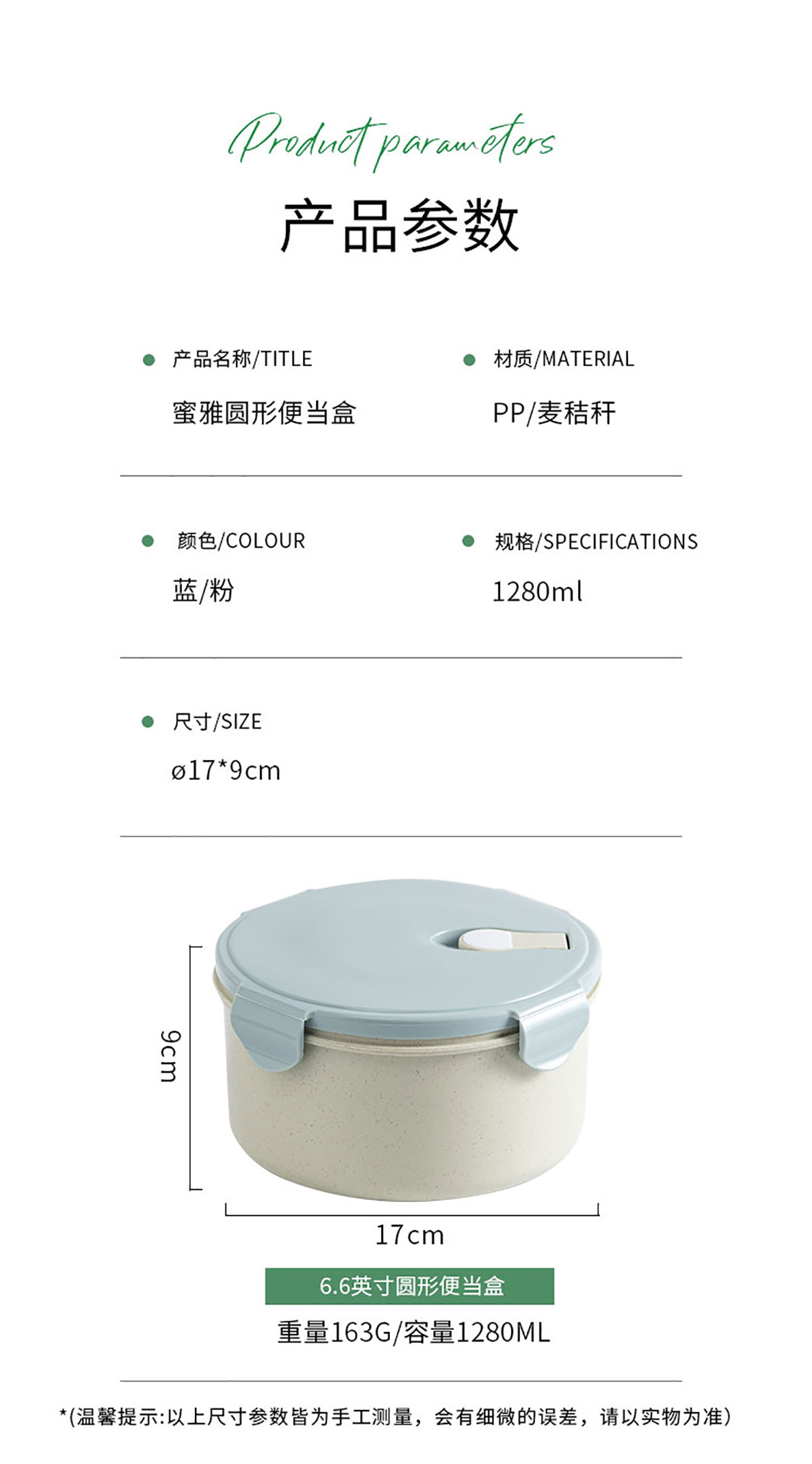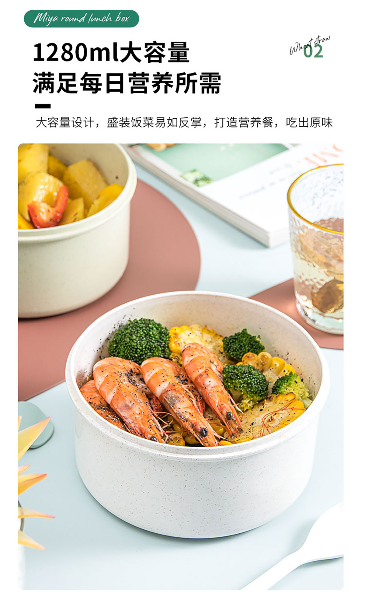 蜜雅圓形便當(dāng)盒(1280ml)