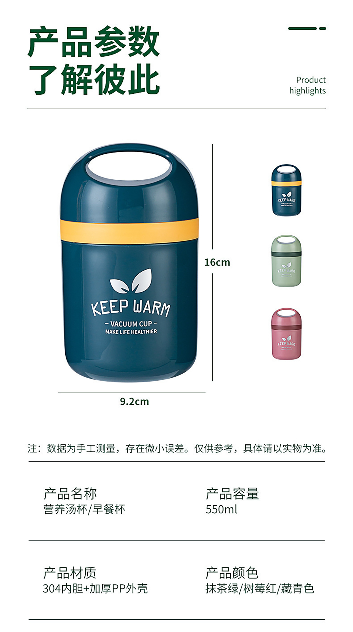 Stuff:PP+304不銹鋼內(nèi)膽/彩盒