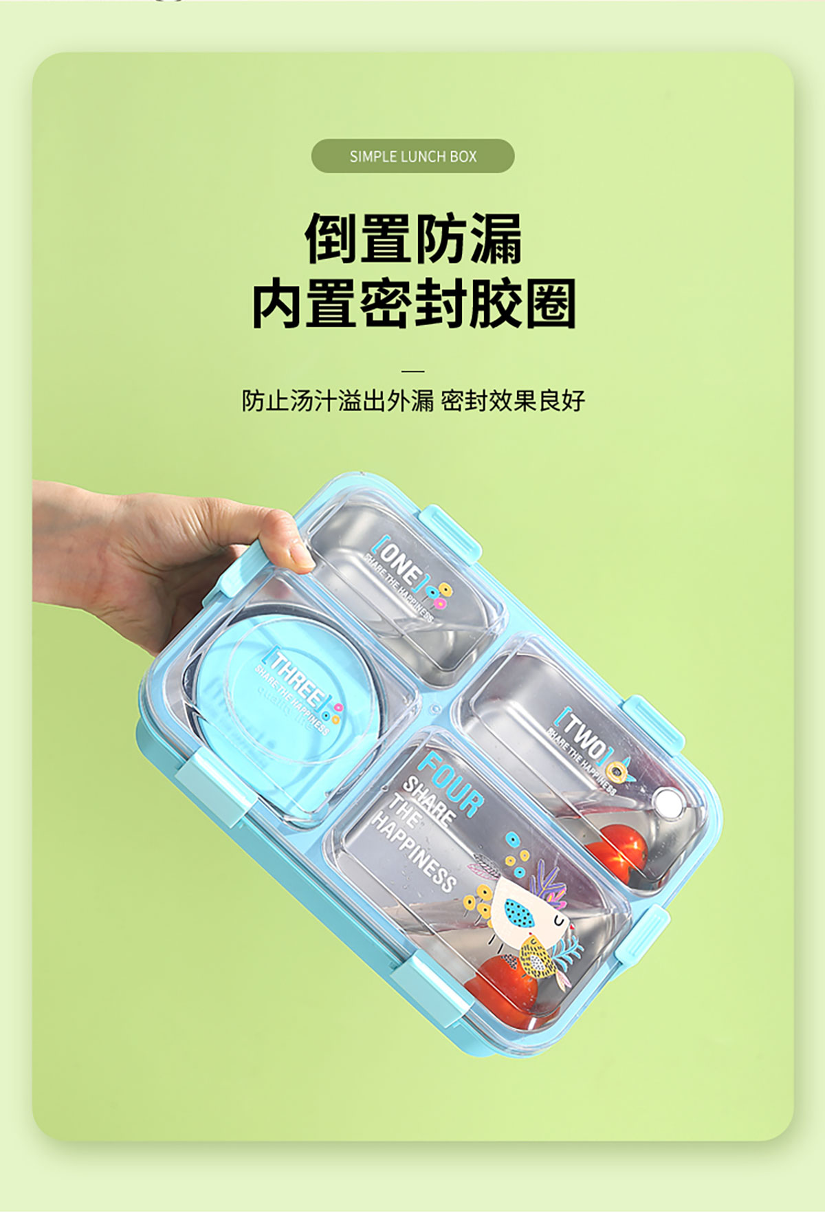 3D噴繪大三格/四格帶醬盒/四格帶碗加高不銹鋼餐盒