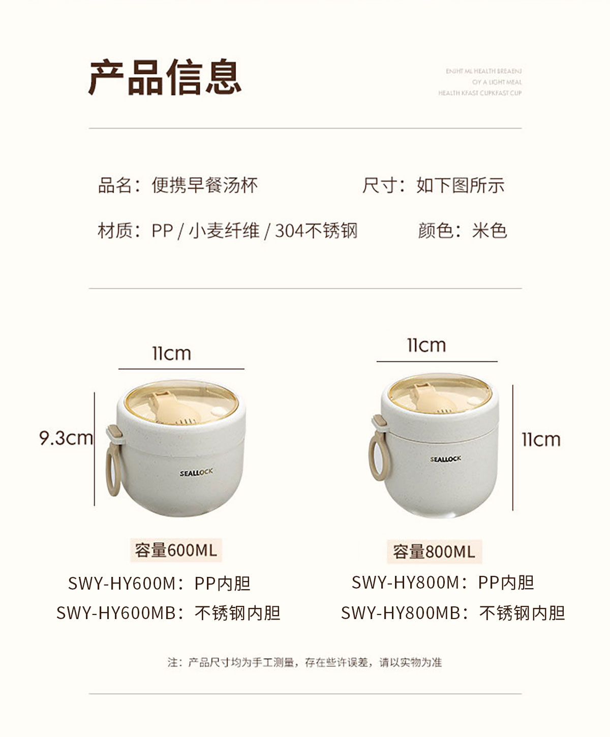 SWY-HY600M(塑料內(nèi)膽):?110*93mm/600ml
