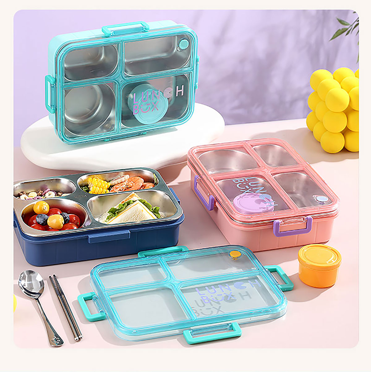 AQX-2623:262*193*65mm/不銹鋼4格900ml+鋼碗150ml