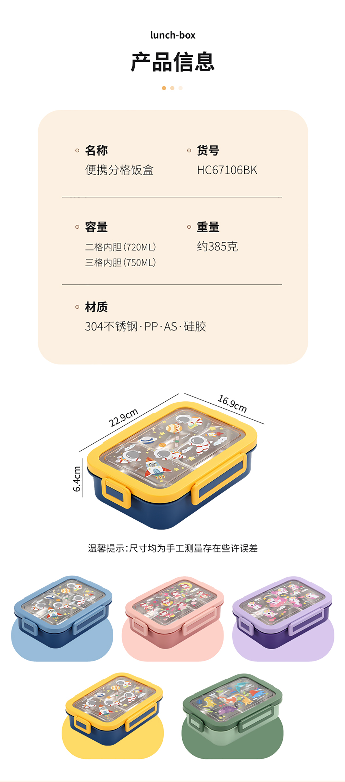 卡通不銹鋼飯盒兩格/三格款