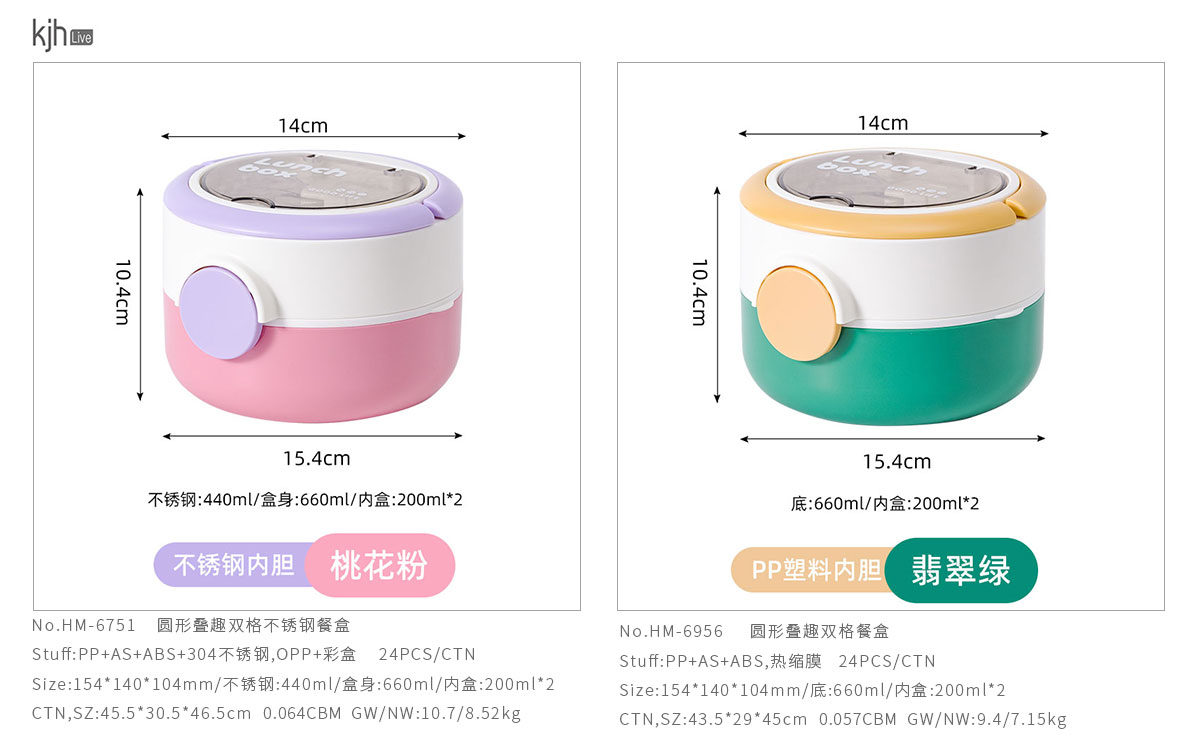HM-6751(不銹鋼款):154*140*104mm/不銹鋼:440ml/盒身:660ml/內(nèi)盒:200ml*2