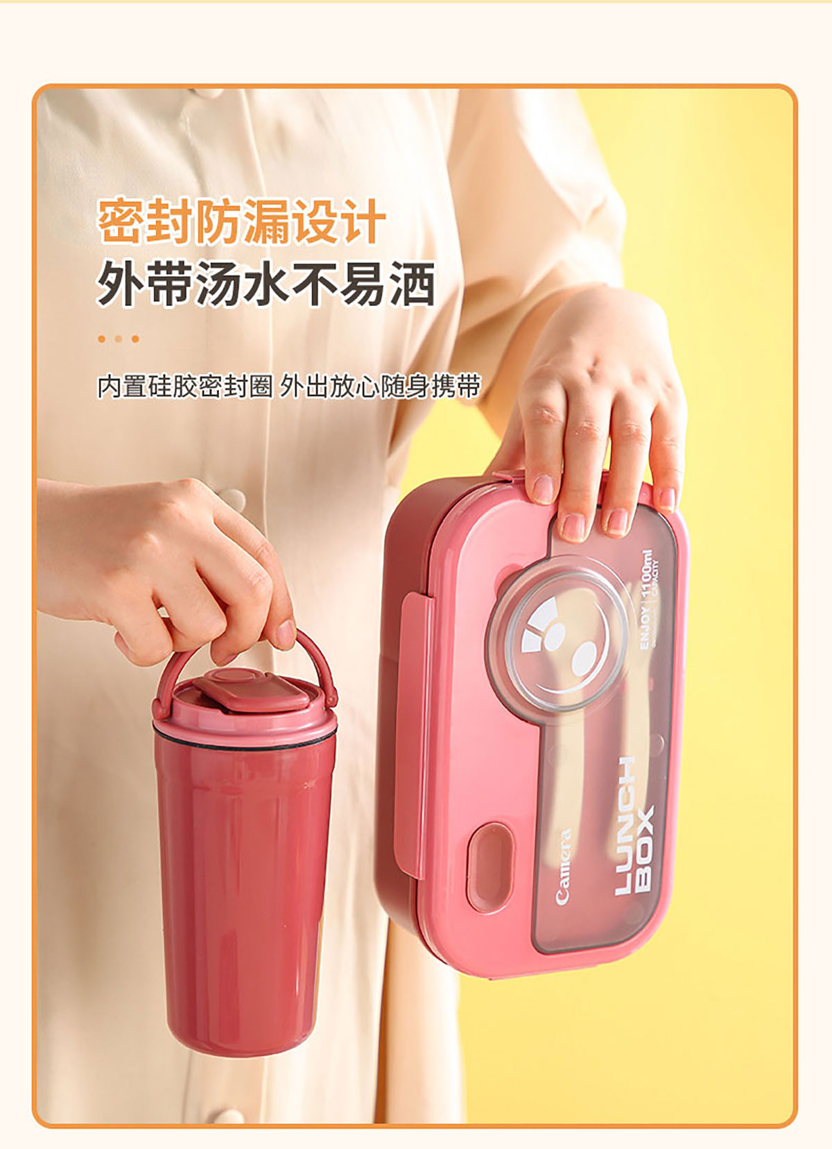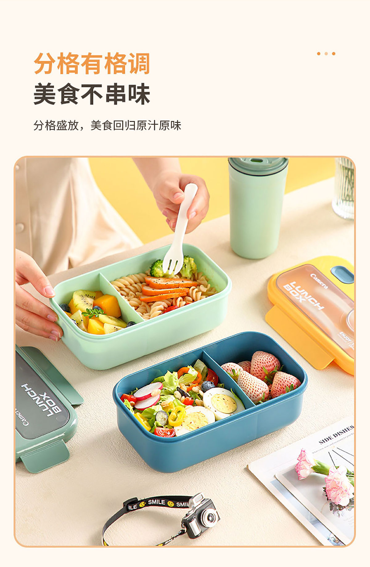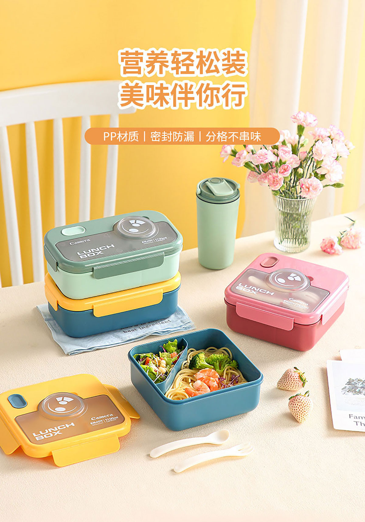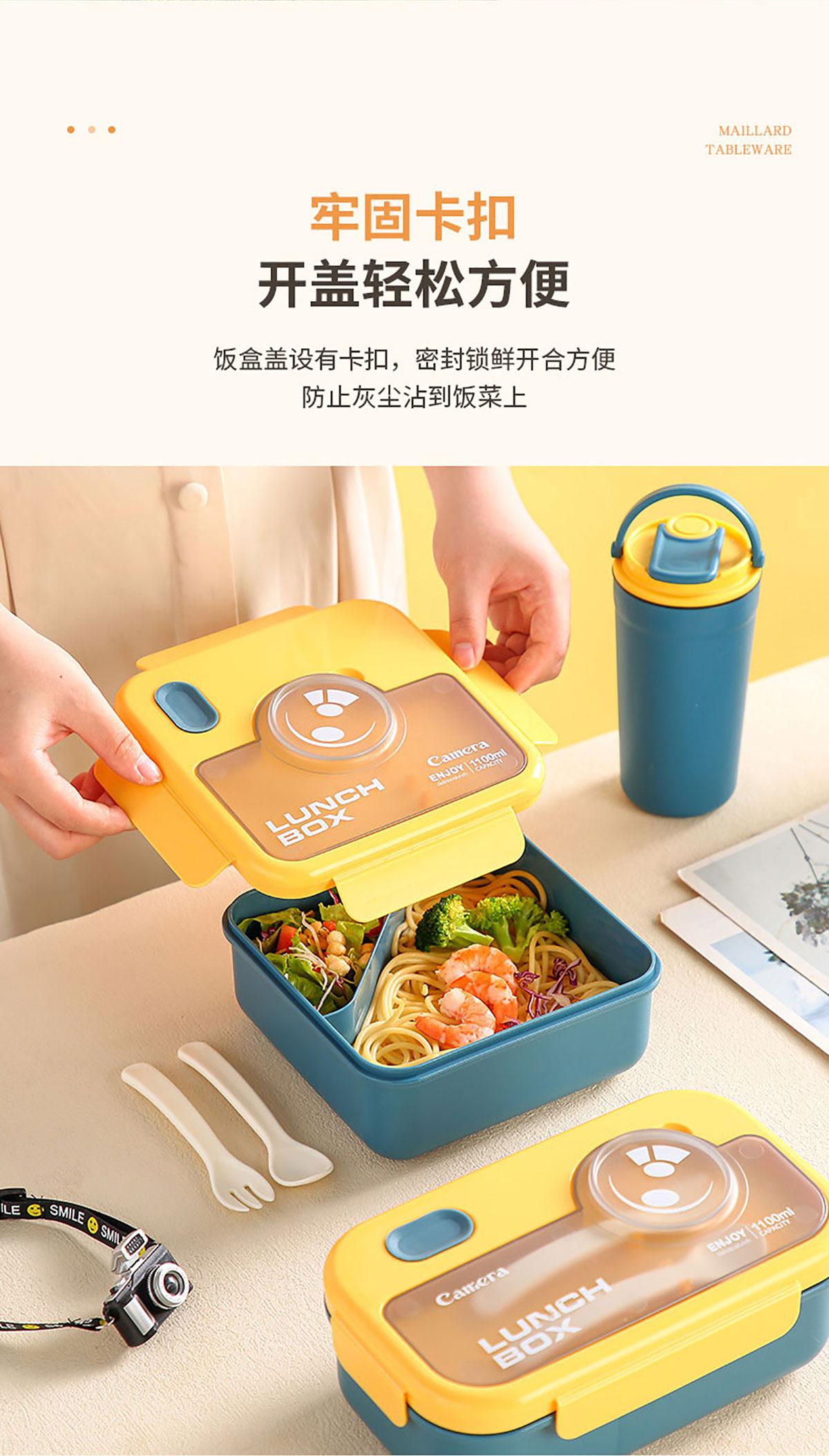 莫蘭迪長方1100ml/正方1000ml相機飯盒(配叉+勺)