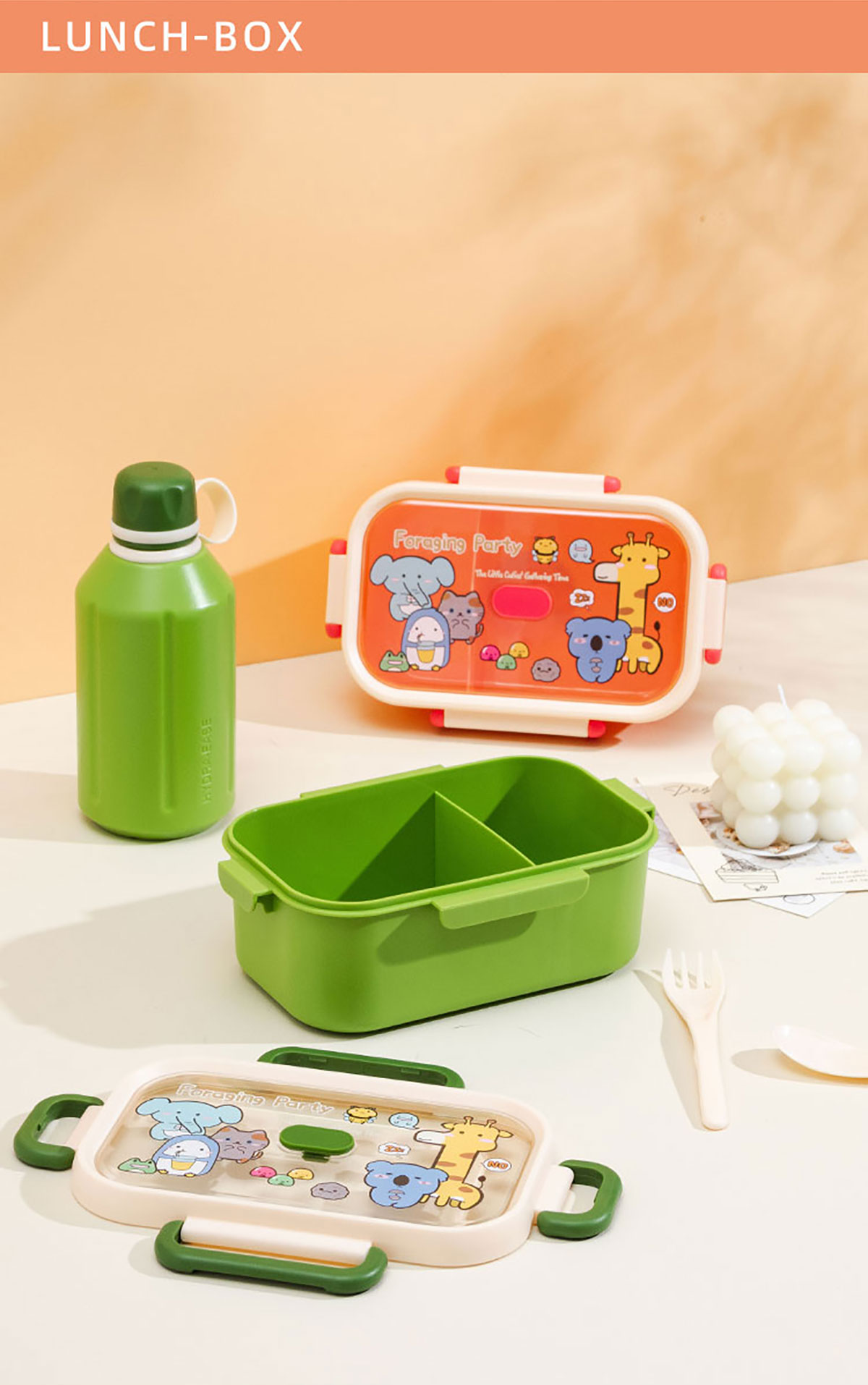 尚趣長方單層分格飯盒(1000ml)/+圓形/方形運(yùn)動(dòng)水壺(500ml)