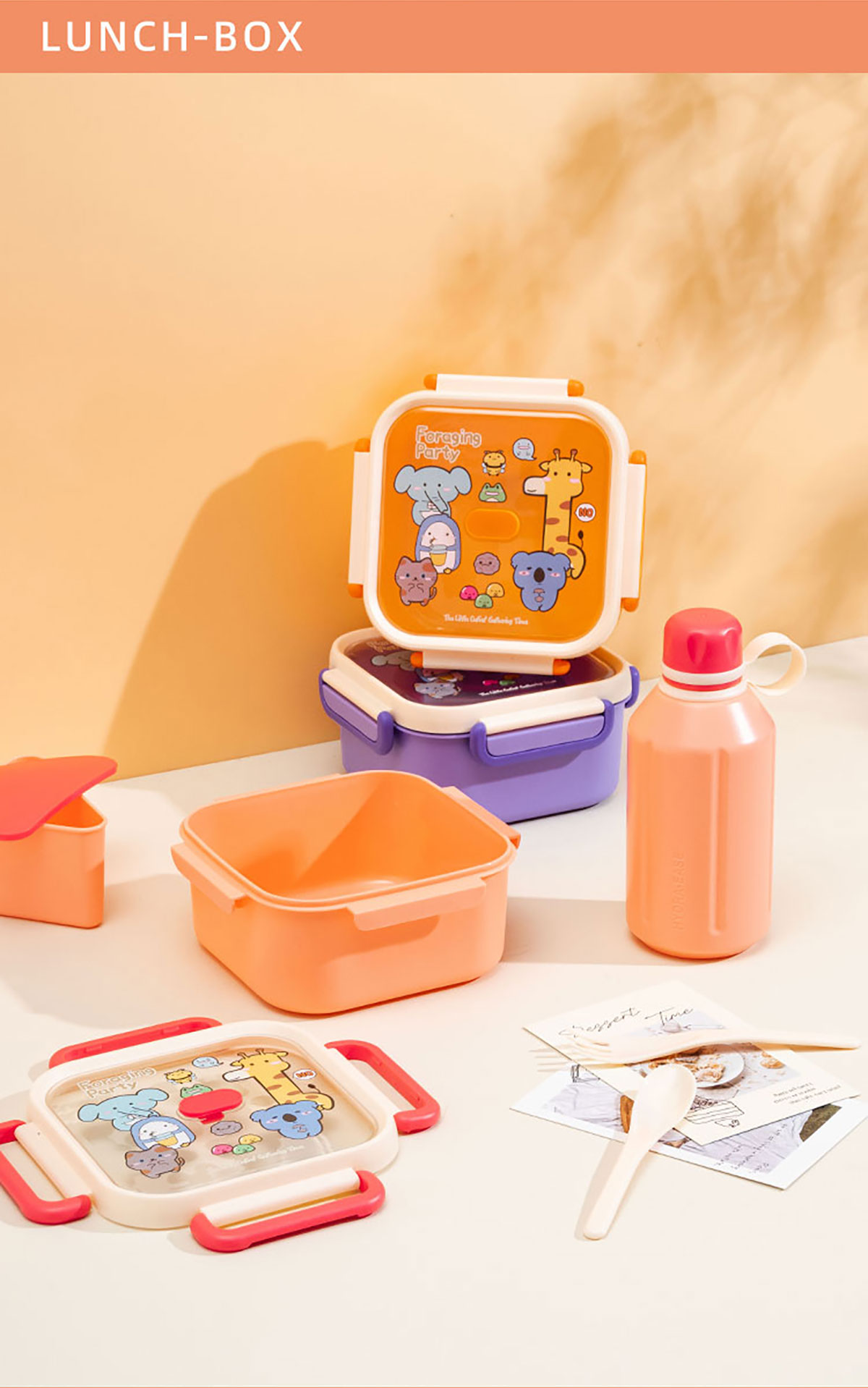 尚趣正方單層飯盒(1000ml)(含格子)/+圓形/方形運(yùn)動水壺(500ml)
