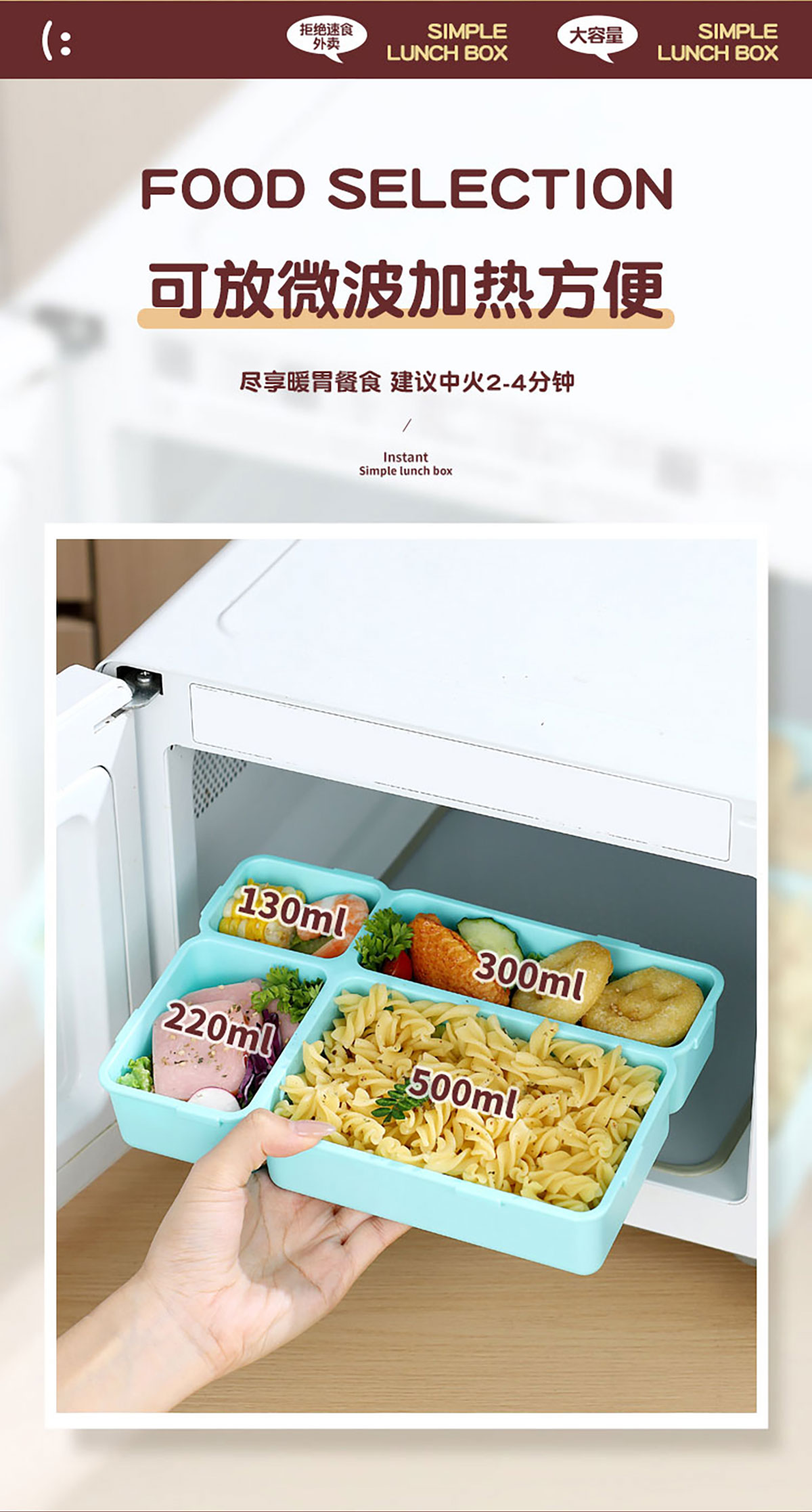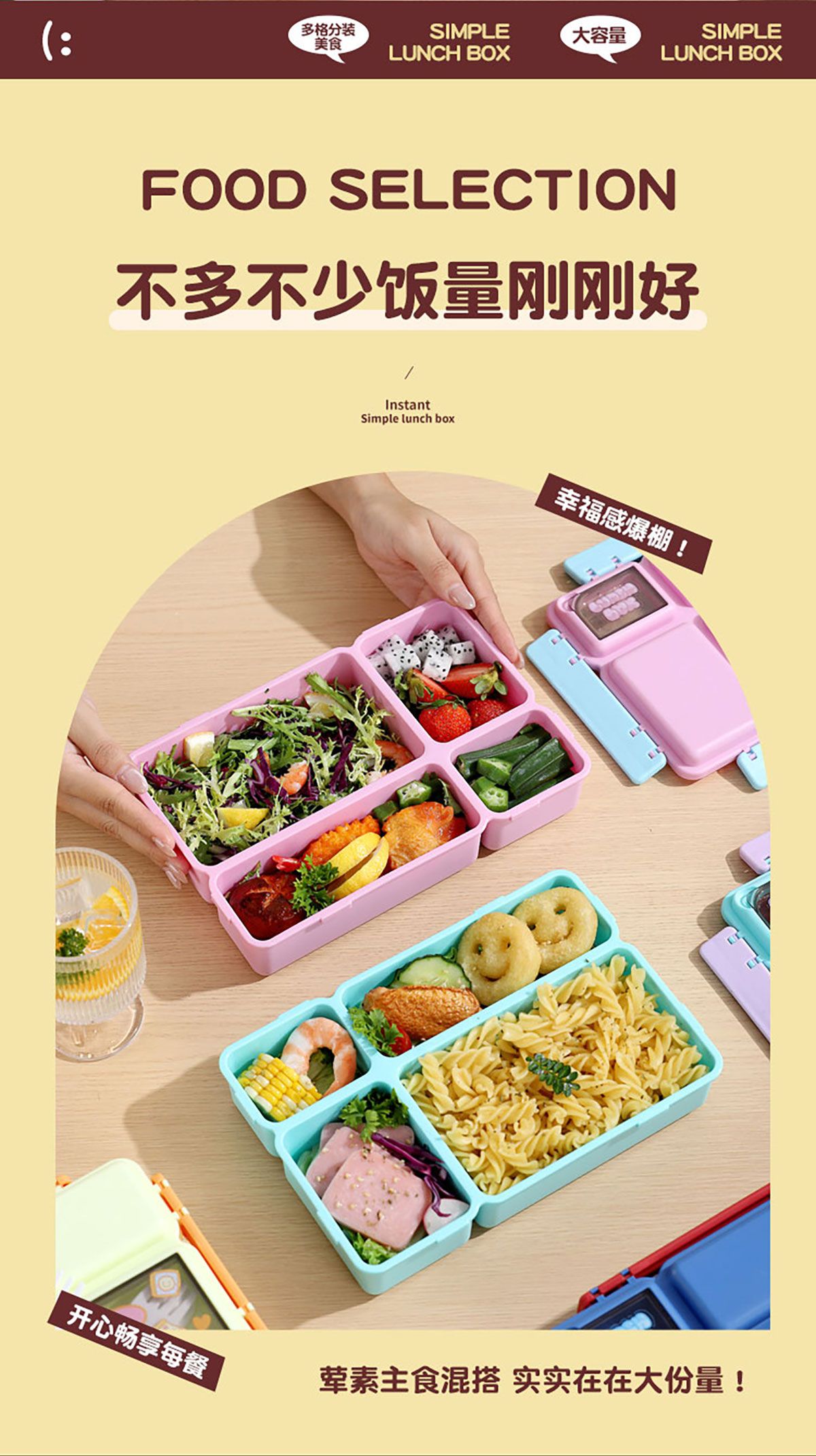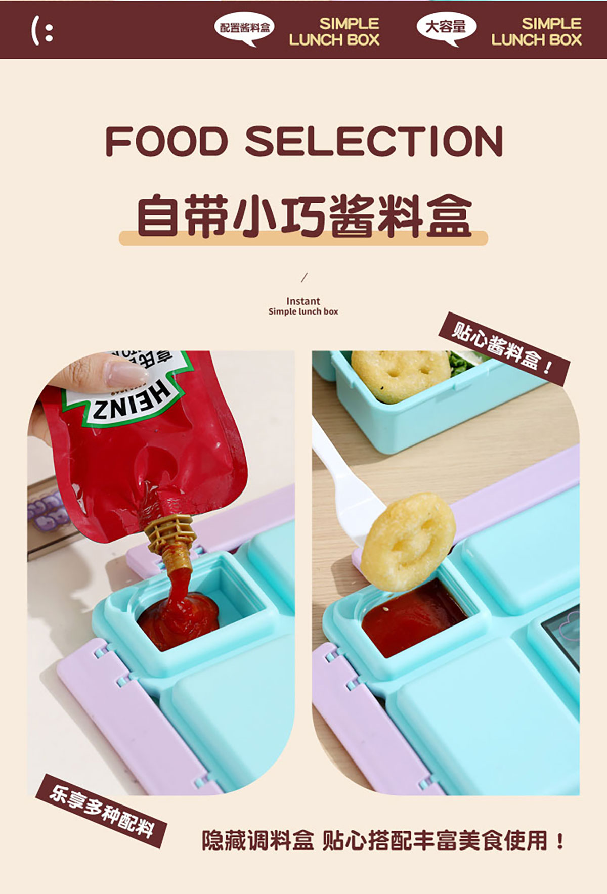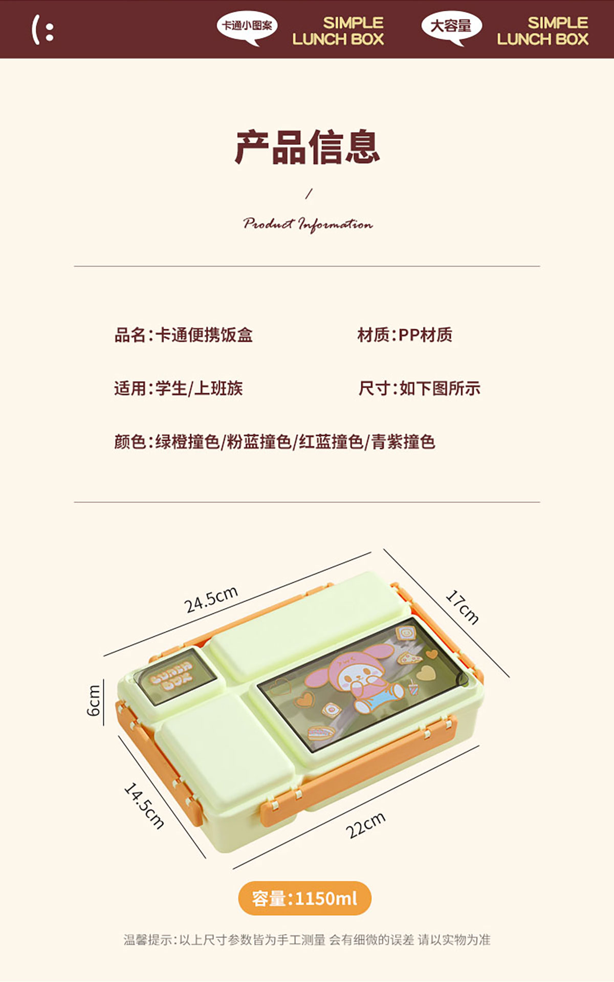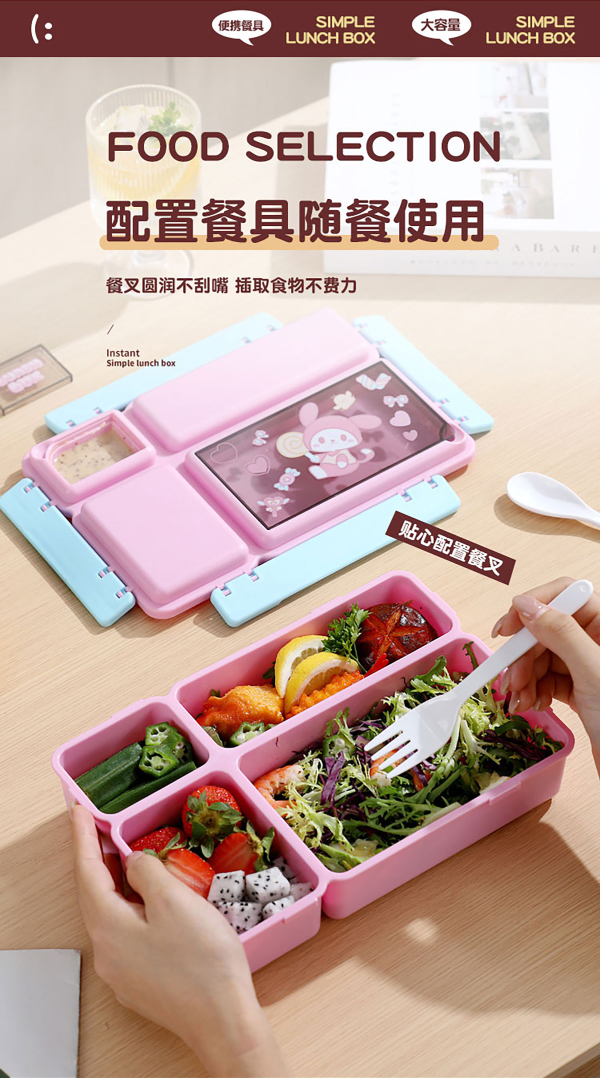長方分格飯盒(卡通)1150ml