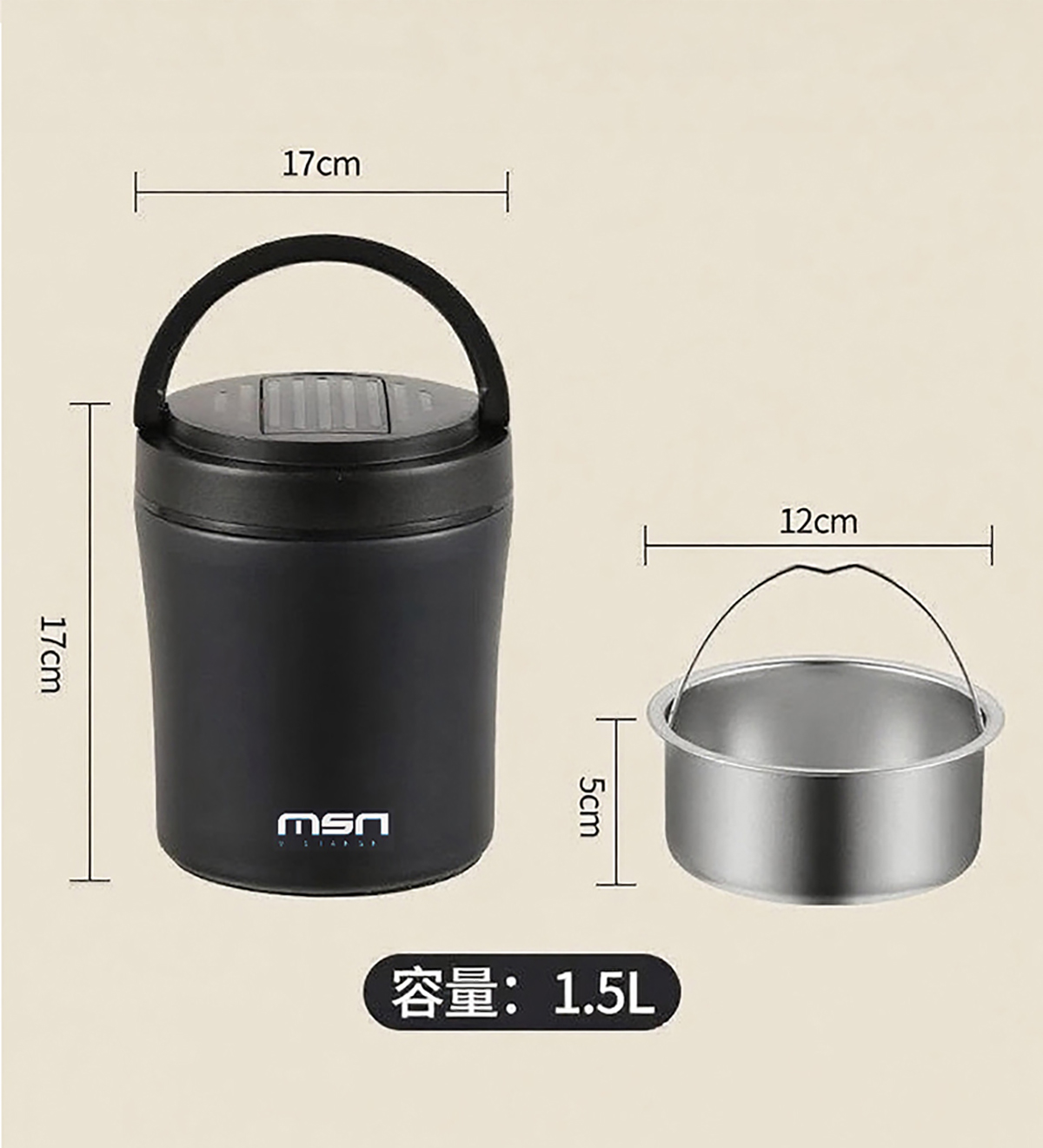 Size: MSN-1005(小號):140*145mm/1200ml 格子:120*43mm