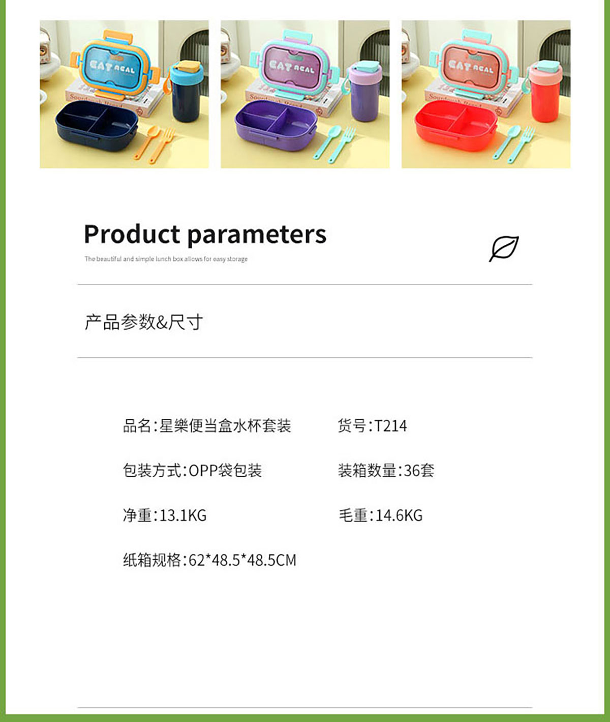 SWY-T214(套裝款):飯盒:215*149*71mm/1000ml 水壺:直徑8.2*高16.1/480ml