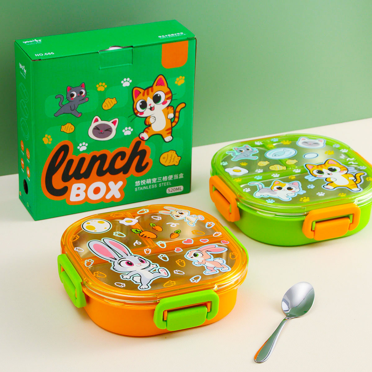 悠悅萌寵三格便當盒(520ml)