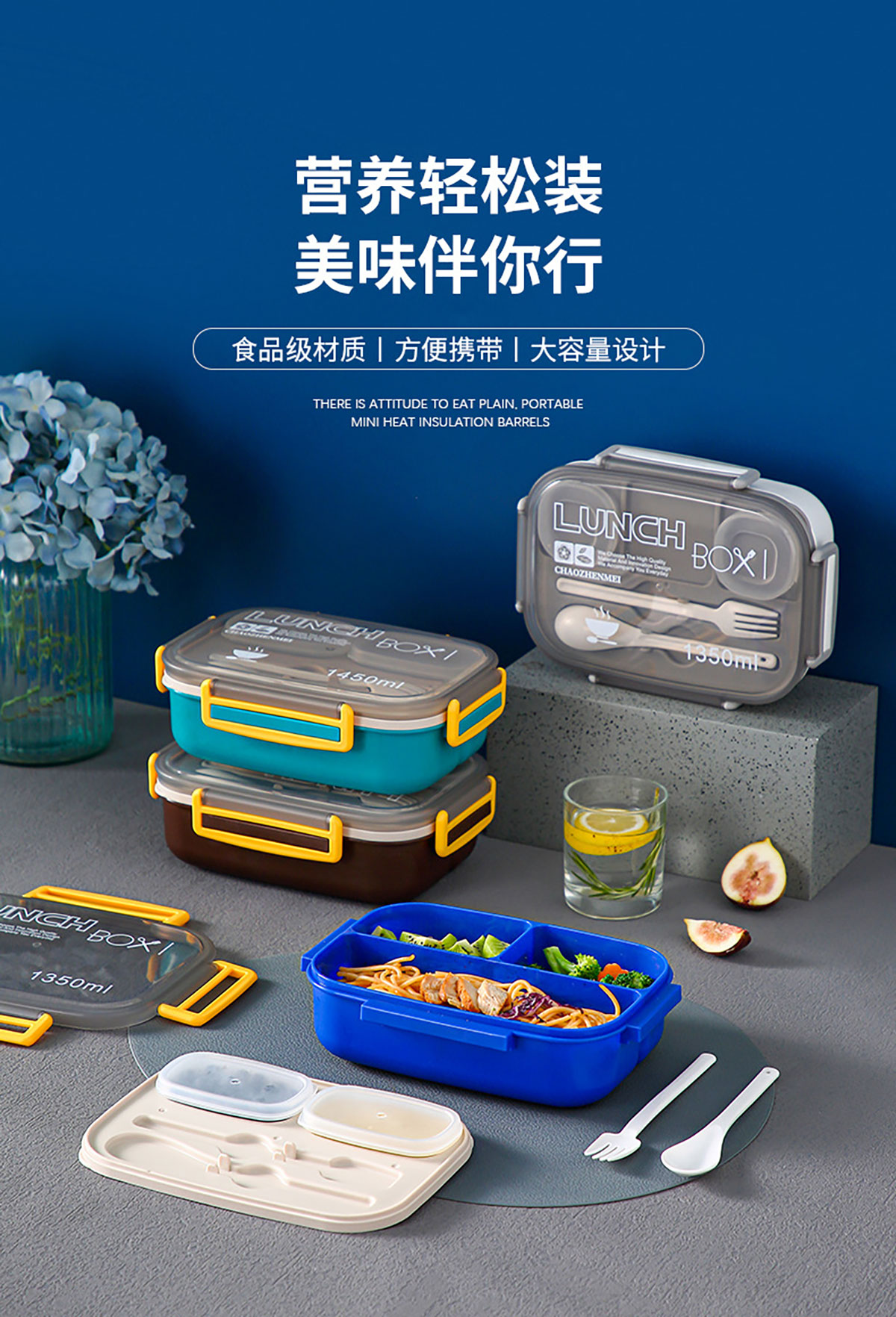 Size: YC-9047(三分格):230*165*80mm/1450ml